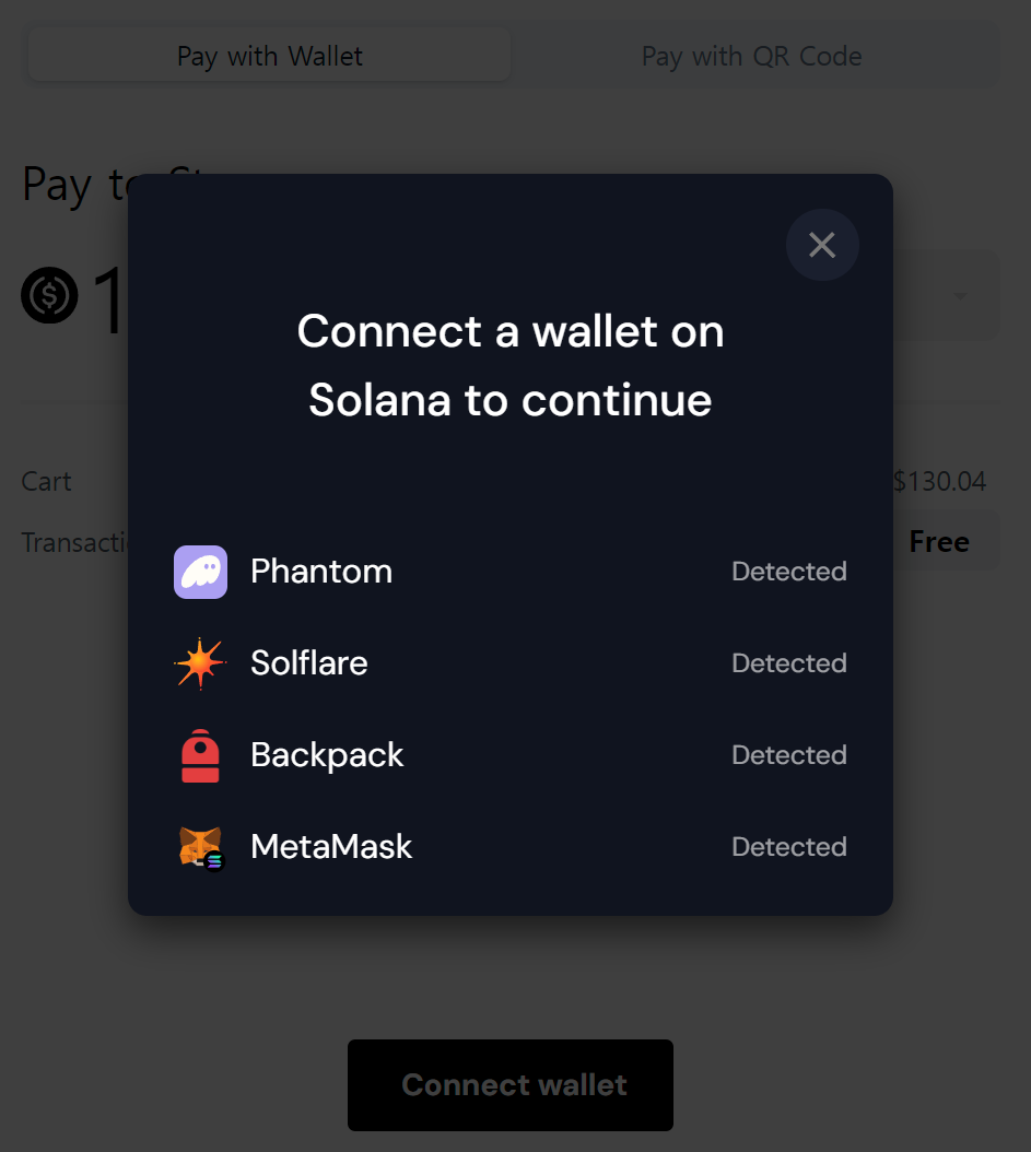 솔라나페이를 이용하는 경우 솔라나 지갑에 구매할 금액을 미리 넣어두셔야 합니다.