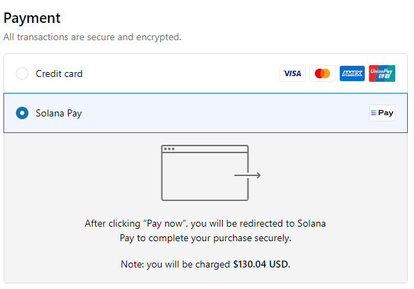 - 신용카드 혹은 솔라나페이