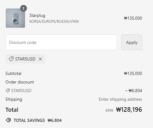 6) DISCOUNT CODE란에 STAR5USD를 입력하면 5불 할인이 됩니다.