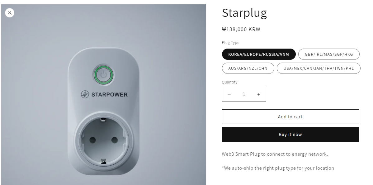사용자는 Starpower의 스마트 플러그를 구입하거나 Starpower가 승인한 서드파티 스마트 플러그를 사용하여 전기 장치를 네트워크에 연결할 수 있습니다.